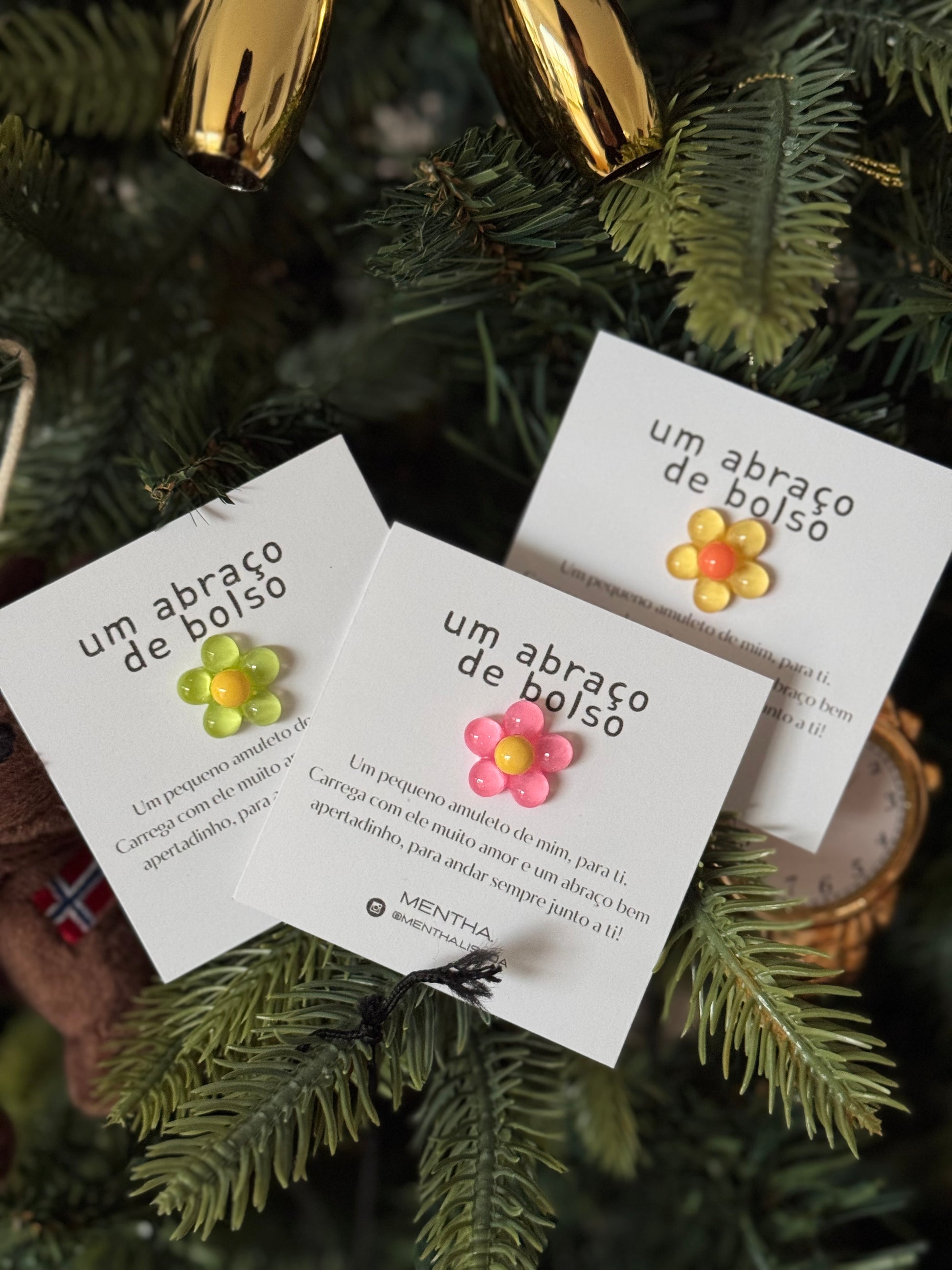 Conjunto 3 amuletos: rosa, verde e amarelo 🌺